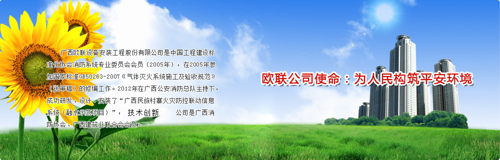 廣西歐聯(lián)設(shè)備安裝工程股份有限公司,成立于2002年12月,創(chuàng)立至今,公司始終專注于設(shè)備安裝、消防行業(yè)和設(shè)施設(shè)備的研發(fā)、設(shè)計(jì)、承包施工、消防檢測(cè)、維護(hù)保養(yǎng)、建筑(物業(yè))設(shè)施設(shè)備安全運(yùn)營(yíng)服務(wù)物聯(lián)中心。公司總部位于南寧市國(guó)家高新開(kāi)發(fā)區(qū)東盟企業(yè)總部港,在總部港擁有自有產(chǎn)權(quán)的綜合辦公樓一幢,并在南寧市東方明珠花園12樓設(shè)立銷售總部。
